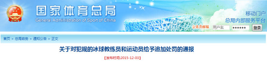 关键词:体育总局 冰球联赛罚单 郎兵宇