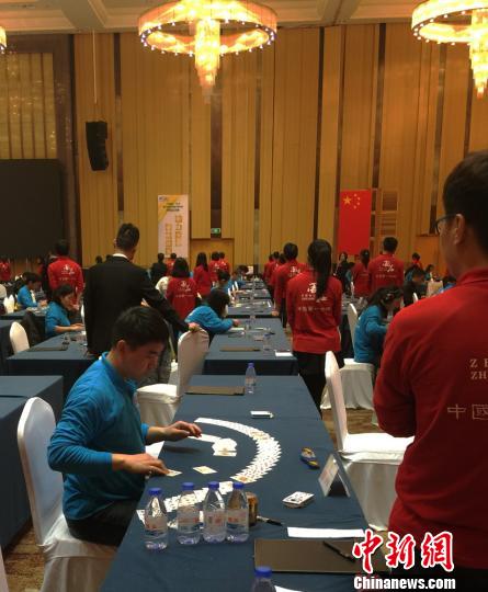 第二十四届世界脑力锦标赛中国赛12月2日晚在江苏昆山落下帷幕。来自全国37个赛区的541选手经过三天的激励角逐,决胜出儿童、少年、成年、老年等四个级别的总冠、亚、季军。图为快速扑克牌比赛现场?!』朴ā∩?br/>
