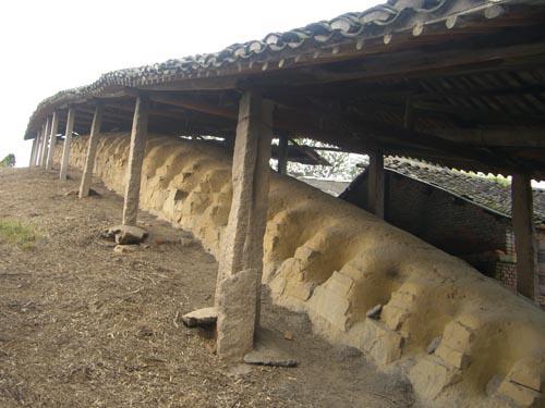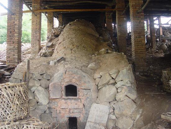 龙窑是中国古代陶业工人集体智慧的结晶,是一种依山坯用砖砌筑成的斜坡式弯状隧道,形状就像古人所说的长龙。其长度为30-70米,顶端高约12米,倾斜角为8-20度,分窑头、窑床、窑尾三部分,龙窑隧道两旁,每隔1.3米开着投放颜料的小洞(俗称鳞眼洞)。