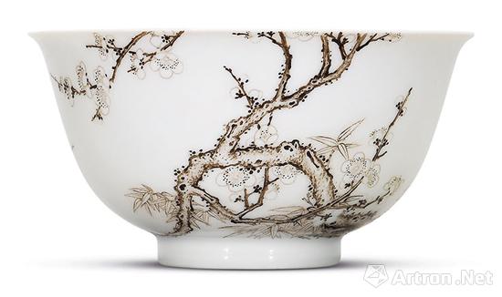 清雍正 珐琅彩赭墨梅竹图碗,成交价:85,240,000港元