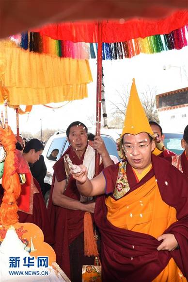 12月1日,班禅额尔德尼·确吉杰布抵达日喀则扎什伦布寺。当日,班禅额尔德尼·确吉杰布在结束拉萨的社会活动和佛事活动之后,从拉萨乘火车到达日喀则市扎什伦布寺,这是班禅额尔德尼·确吉杰布历史上第一次乘火车回到扎什伦布寺。拉萨至日喀则市火车于2014年8月15日开通,截至目前运送旅客约80万人次。新华社记者 觉果 摄