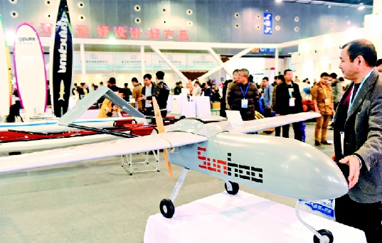 11月30日,装博会上的一款无人机吸引了客商的目光。当日,为期4天的2015中国义乌国际装备博览会暨第五届智能博览会,在浙江省义乌市义乌国际博览中心开幕。本届装博会设人工智能技术、工业自动化及3D打印、纺织及服装机械等9大展区3193个展位,吸引来自中国、美国、德国等11个国家和地区的769家企业参展。新华社发