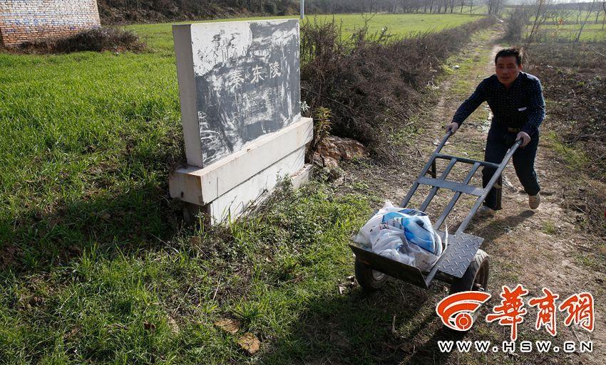 4号陵园位于小峪河南岸,整个陵区位于山前冲击扇面上?;瘫钦咴谙殖】吹剑谝黄筇锢?,竖立着国家重点文物保护碑。在4号陵园亚字形大墓的位置早已没有了封土,如果不是专家介绍,很难相信麦田下埋葬着一位先秦太后。图为方圆20平方公里的秦东陵,附近老百姓依然在耕作。 陈团结 摄 图片来源:华商网