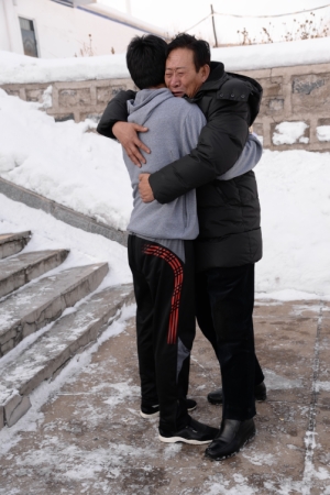 12月4日,雍奎魁父亲(右)紧抱重获自由的儿子失声痛哭。新华社记者 周立权 摄
