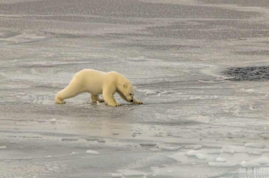 关键词:冰面太滑 北极熊匍匐前行