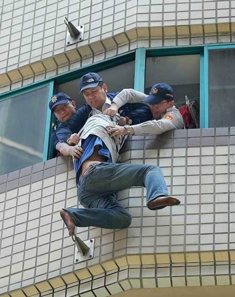 鼓山分局侦查队长曾铭忠以谈判专家的角色对谈,吴几番犹豫,后来还从7楼逐层下攀到5楼。最后趁吴男不注意时将他拉入大楼,结束这场跳楼闹剧。