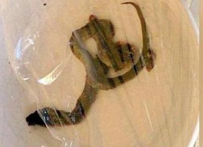 脱下鞋后,将鞋里头的那团东西抖出来,被吓坏了,原来里头的一团是一条毒蛇,而这个时候,这一条蛇已经没气了,已经死亡了。