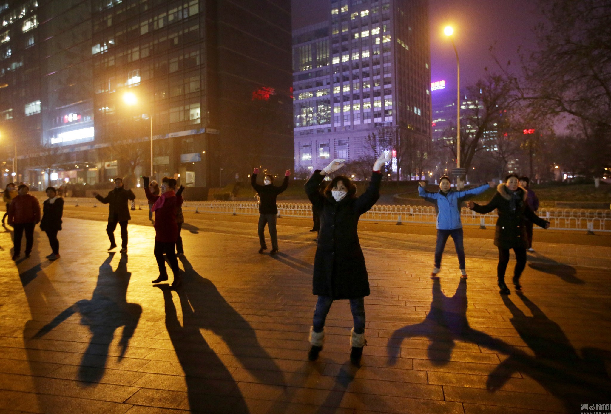 关键词:北京大妈 跳广场舞 雾霾红色预警