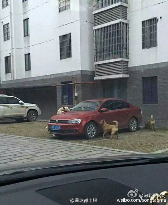 原标题:流浪狗挡车位被踢 “喊同伙”毁车复仇(组图)