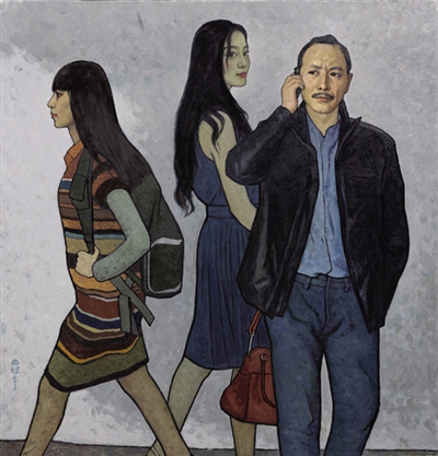 而该展除了展出靳尚谊一路走来的实践外,也着重展出了2006年以来创作的13幅新作,其中包括2015年最新创作的《途中》《蒙古族公主》两件作品。靳尚谊通过对近代以来中国绘画发展历史的研究和反思,认为中国没有经历较为完整丰富的现代主义艺术启蒙和发展就直接进入了后现代观念艺术,造成了艺术语言、社会接受度上有很大断裂,因此提出“中国艺术要补现代主义这一课”。近几年来,靳尚谊的创作再次行进在对中国传统艺术和现代艺术中的“线”、色彩和构型进行融合的实验中。