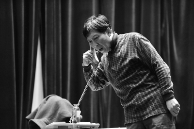 采访那天的连排,韩童生用的第二种处理。舞台上,他站在局长办公室门口,双手紧紧埋进身体两侧,轻微细索地抖动,这种并不过分夸张,不仔细就会错过的细节,使他的表演平添了几分细腻。