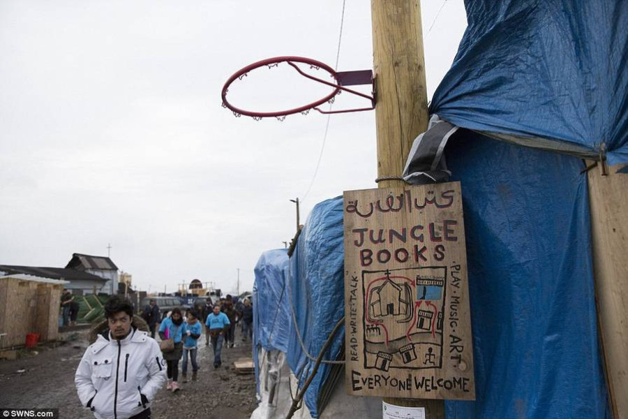 英国活跃分子则设立了穹顶状的帐篷,他们期望在明年建立覆盖整个森林的免费wifi网络。而还有英国人设立了受人欢迎的4G网络。图为书店。