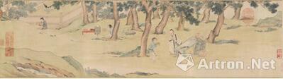 由于仇英擅长临摹,受文徵明器重,并为当时著名收藏家所欣赏,甚至延聘府内,专司临摹,如项元汴就曾馆饩仇英十余年而成画坛佳话。在项元汴眼里仇英的绘画水准是“临古名笔” ,这就是项元汴馆饩仇英的主要原因,项元汴将其收藏的宋元名迹请仇英临摹,这实际上是项元汴的一个重要的文化产业,也是他积累财富的重要手段,即通过临摹的手段达到作品积累的目的,同时也增加了他的个人财富。而这项财富收入无疑是项元汴通过买卖获得的。