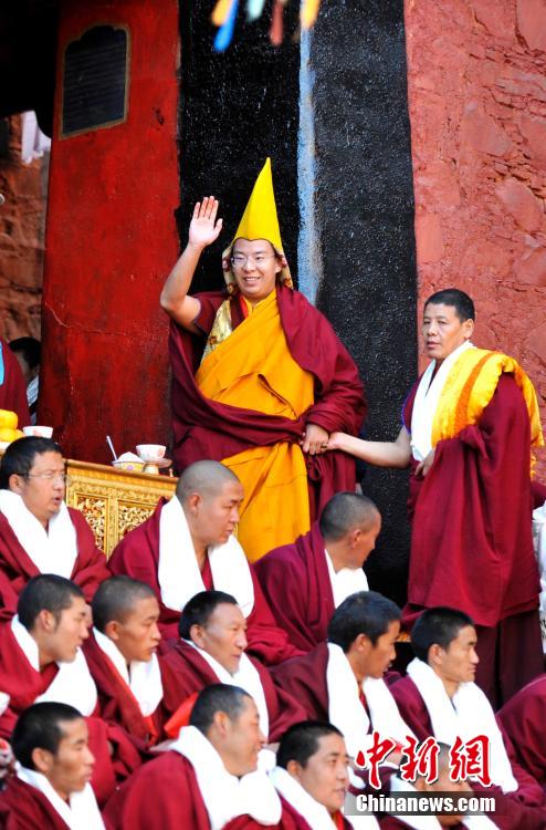 12月8日,活动结束后,班禅向僧俗信众挥手致意。李林 摄