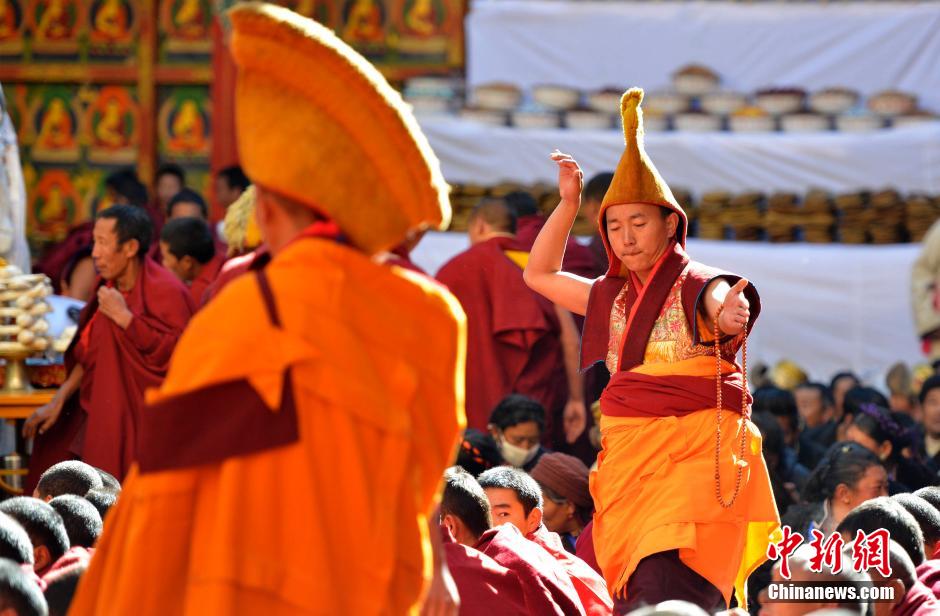 12月8日,扎什伦布寺两位学识渊博的高僧法相辨经。李林 摄