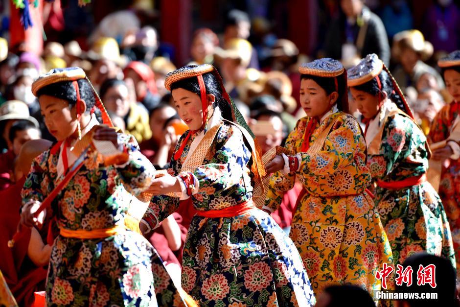 12月8日,僧人在现场跳起了祈福吉祥的“卡尔”舞。李林 摄