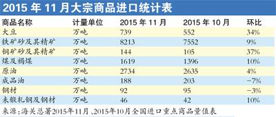 分析师表示,大宗商品进口数量升降各半,未明显回升,而11月大宗商品价格总体下滑,因而也不是进口回升主因。