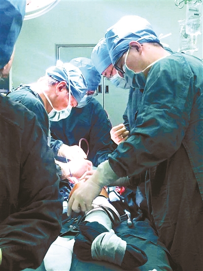 昨天上午9点多,妞妞被推进手术室。在随后的4个小时里,作为主刀医生的骨肿瘤科主任郭卫和他的团队一丝不苟地进行着手术的每一步,麻醉、皮肤消毒、切口、剥离、切除肿瘤、假体重建、缝合……