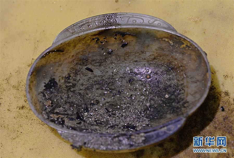 这是海昏侯墓遗址出土的玉耳杯(12月7日摄)。 12月7日,考古工作者在南昌西汉?;韬钅怪鏖な叶喜喾⑾侄嗉衿鳎渲邪ㄓ穸?、鸡心形玉佩、玉环等。据专家介绍,此次出土的玉器做工精美,表明了墓主人身份和地位的高贵。新华社记者 万象 摄