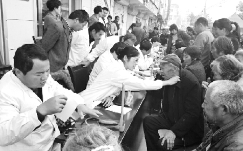 安徽省阜阳市委统战系统与阜南县于集乡结对帮扶工作近日开启。当天农工党阜阳市委组织医疗专家团在于集乡卫生院开展精准帮扶义诊活动,为当地孤寡老人和家境贫困者检查身体、讲解健康保健知识,给弱势群体送去一份关爱。