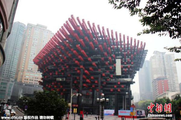 重庆一建筑外形奇特被网友戏称“筷子楼”。12月10日,在重庆出现异动外形酷似“UFO”的建筑,建筑周身拆满一根根“筷子”?!?span style="font-family: inherit; line-height: 1.6;">据悉,该建筑造型来源于重庆湖广会馆中的多重斗拱构件,由于外形像很多红色的筷子,被网友戏称为“筷子楼”。