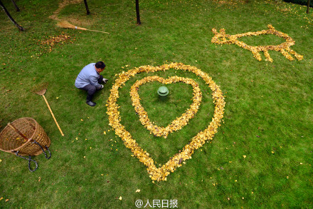 8日,成都52岁的扫地师傅冯大爷,趁着小区落叶遍地,以扫帚为笔,树叶为墨,草地为纸,书画出冬季里的一抹温暖。一张张“笑脸”,一颗颗桃心,一只只山羊,活灵活现地在草地上铺张开来。小区居民直夸他有“艺术细胞”!快来看看。