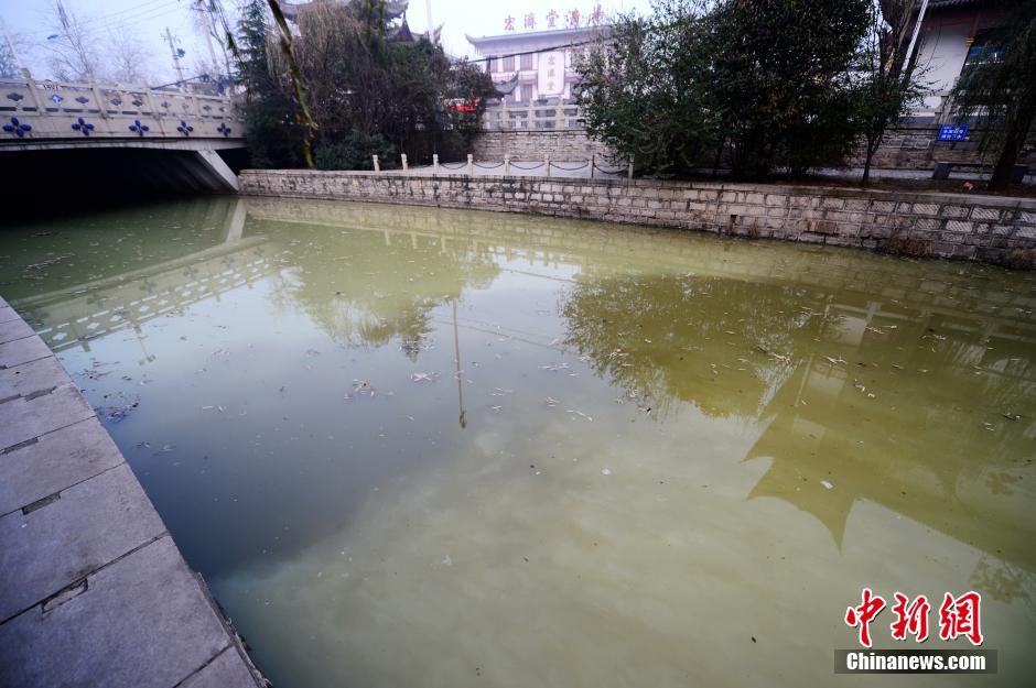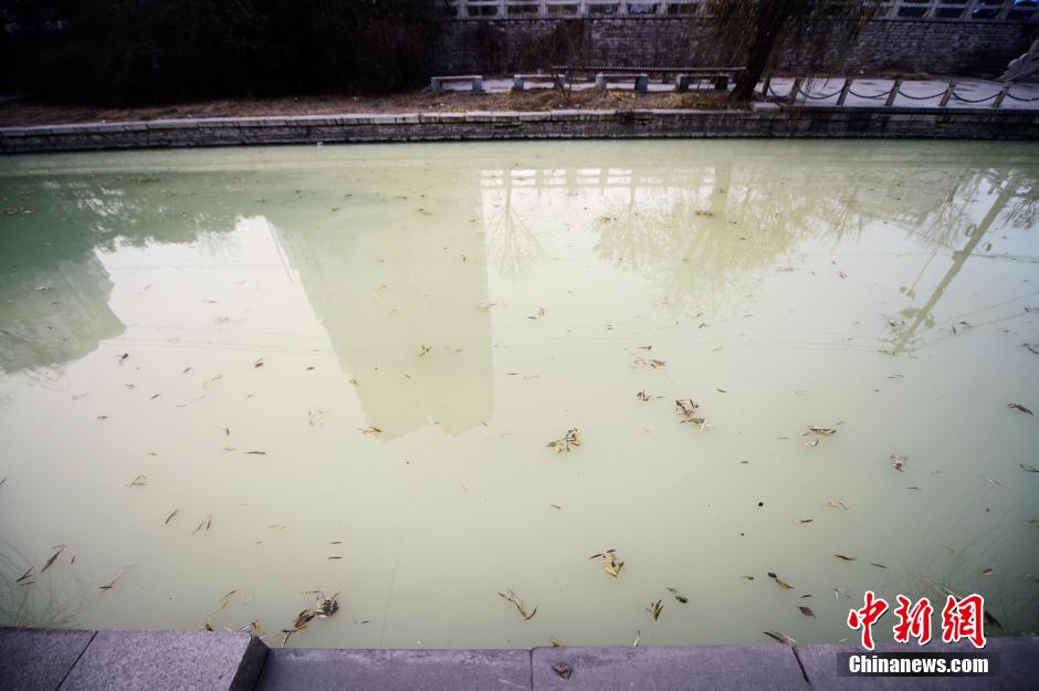 12月13日消息,山东省济南市,在东工商河药王楼附近,西岸河堤处有一排水口,大量褐色的污水排入河中,河水由原来的碧绿色变成了米黄色,走进河岸时可以闻到刺鼻的臭味。沿着河道向下游走,下游500多米长的河道内河水全部被污染,而上游河水仍是碧绿色。 图片来源:视觉中国
