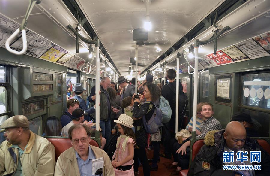 12月13日,乘客在纽约曼哈顿乘坐半个世纪以前的地铁车厢。新华社记者王雷摄