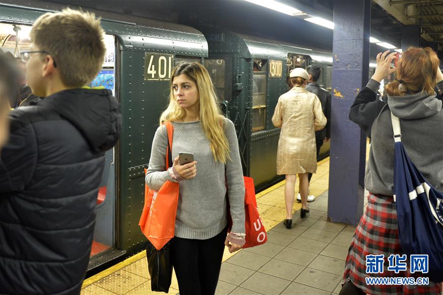 12月13日,乘客在纽约曼哈顿第二大街乘坐怀旧地铁列车。新华社记者王雷摄