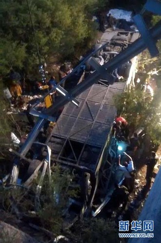 阿根廷警方称,14凌晨一辆载有50余名宪兵的客车在阿北部萨尔塔省境内34号国道上的一座桥梁处,坠掉入20米深的峡谷,造成车上43名士兵当场死亡,4人受重伤,10人轻伤。
