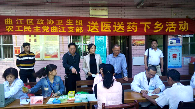2015年11月24日,农工党韶关市委员会组织曲江区支部联合曲江区政协卫生组到樟市镇西约村开展送医送药下乡活动,曲江区副区长、农工党韶关市委副主委卢春燕,区政协副主席梁文华,区卫生和计划生育局局长涂德发等参加了活动?;疃碧旃步邮苋褐谝逭镒裳?50多人次,发放健康宣传资料200多份,免费发放药品价值1500多元。