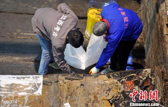 12月15日,考古人员用宣纸覆盖在棺柩上,并进行洒水处理。专家介绍,这是每天要进行的日常保湿工作。 刘占昆 摄