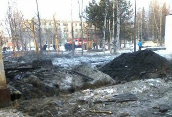 俄罗斯一试射巡航导弹偏离轨道 坠落居民点附近。图为事发现场。(网页截图)