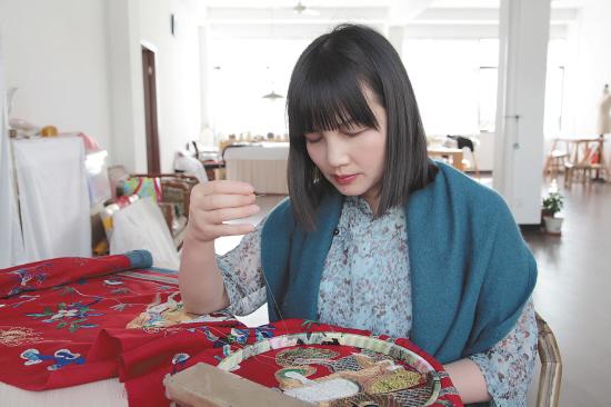 曾作为国礼送给外宾的“龙凤袍”,便是她的得意之作,在刺绣图案的设计上,既吸收融合传统民间文化元素精华,又重视现代绘画元素的应用,因而颇受消费者青睐,成为公司的主打产品。