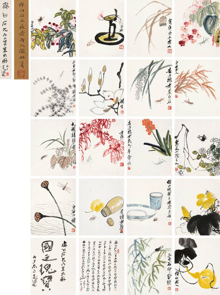 因为费时费眼,齐白石一生中所绘的花卉工虫册页数量极其有限,只有对于极其重要的人物才会聚力画齐一册。这套册页是继2009年《可惜无声——齐白石工虫花卉册页》后面世的又一件齐白石绘画生涯中极为精彩,也是数量最多的顶级册页。