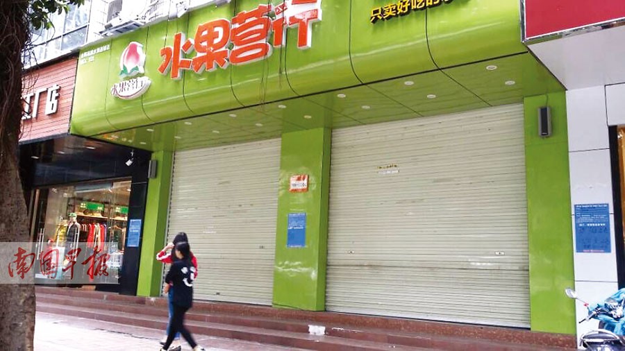 记者了解到,“水果营行”门店关停现象12月初起始于广西等地,随后纷纷扩散到全国多地。为何各地均出现门店纷纷停业现象?有消息称,该公司近期出现资金链?;踔脸鱿帧袄习迮苈贰钡却?。