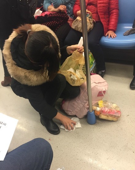 儿子地铁内呕吐 妈妈蹲下把地擦干净获赞