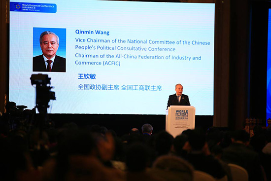 第二次世界互联网大会“数字中国”论坛之乌镇论坛·数字中国于12月17日14时在乌镇举行。图为全国政协副主席、全国工商联主席王钦敏致辞。(摄影 中国日报网 王成孟)