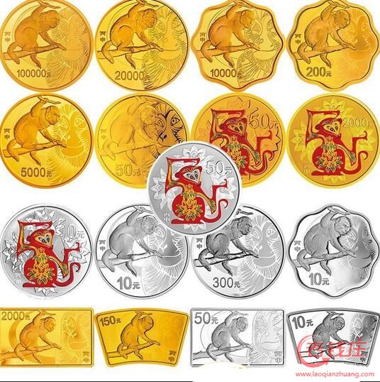 丙申生肖贺岁纪念金第一款正面图案为:“灵猴送?!蓖己图糁健案!弊?/strong>