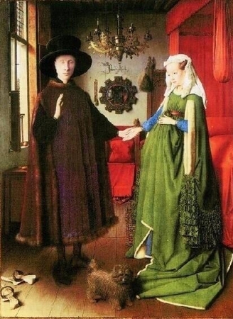 除了《蒙娜丽莎》还有凡艾克的名画《商人的婚礼》男主又是他。