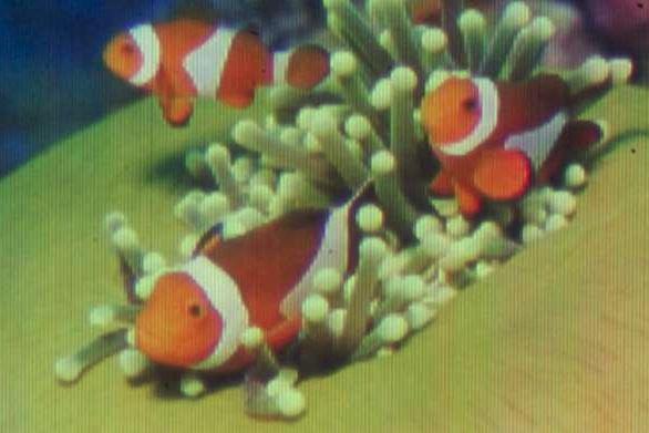 这张图片以电影《海底总动员》为主题,上面有几条小丑鱼,色彩仅24-bit。由于图片实在太小,不用特制显微镜不可能看得见。