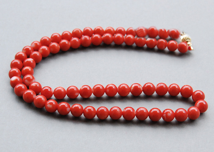 仿制品这么多,我们应该如何分辨出来呢?纯天然的珊瑚珠宝有如下几个特征:有自然的细斜横纹理,每件珊瑚都不相同;有自然的瑕疵,如小白点、小黑点、小斑点,这些都很正常,并非不良品。