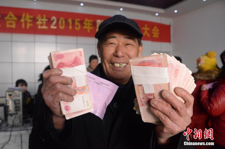 12月19日,河北保定市望都县恒业合作社举办股金分红大会,以入股该社小辛庄村千亩莲藕基地投入额的18%向股民分红,共计1000多万元。据了解,该合作社于2007年10月成立,共有484户社员得到了股金分红。陈卫红马立方 摄
