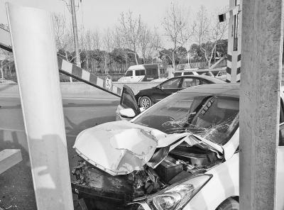 原标题:郑州一轿车撞限高杆严重变形 司机称精力不集中