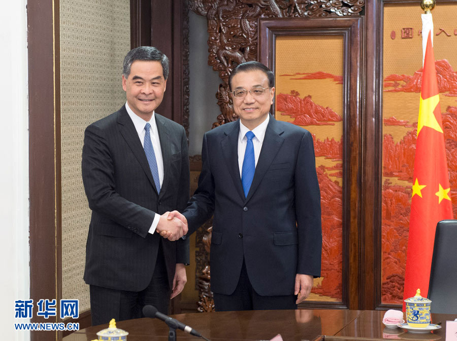 李克强指出,中央政府高度重视香港的繁荣、稳定与发展,一如既往支持香港特区政府和行政长官依法施政,全力支持特区发展经济、改善民生。不久前内地与香港在更紧密经贸关系安排(CEPA)框架下签署服务贸易协议,如期完成两地基本实现服务贸易自由化的目标。国家制定的“十三五”规划将进一步发挥香港优势,提升香港在国家经济发展和对外开放中的地位和功能。