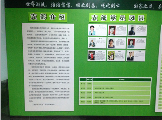 为了让党员有一个属于自己的家,民革衢州祖统支部潘峰带领支部党员将自己公司的会议室进行布置,办成祖统之家,支部简介、支部党员介绍、支部大事记、党员风采、都生动的展现出来。