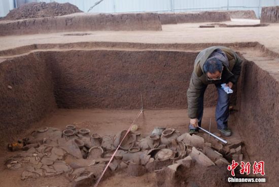 “通过调查,我们发现在赤水河流域有31处从新石器时期、秦汉时期、魏晋南北朝,甚至明、清等不同时期的人类聚落遗存,而黄金湾又是其中面积最大的一处遗址?!惫笾菔】脊叛芯克平鹜蹇脊哦佣映ふ鸥目谓樯埽?014年11月启动对黄金湾遗址考古发掘以来,共发掘出竖穴土坑墓葬18座,瓦(瓮)棺葬7座,砖石墓葬3座;还有呈现新石器时期特点的灰坑、陶窑以及房址等。遗址共出土了陶器、石器、铜器以及铁器等器物数千件(片),其中完整和可修复的器物600余件。