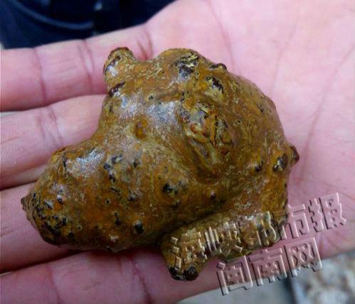 “乍一看,我也以为是一块生姜”,陈先生说,宰羊后,妻子帮忙清理羊内脏,听到妻子叫唤,他凑近定睛细瞧,放手里摸了摸,喜出望外,“这叫‘羊黄’,是块宝贝啊”!