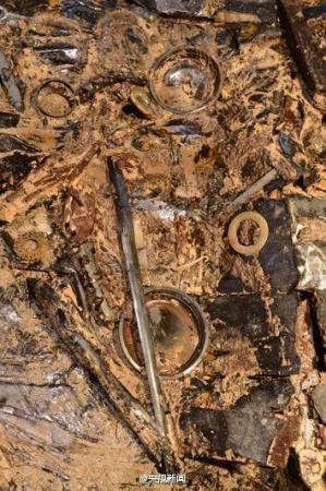 西 汉大墓考古领队杨军透露,西汉大墓地处文献记载的昌邑王刘贺的封地,历史背景十分清楚。此外,实用车马陪葬坑出土的雕刻精美纹饰鎏金、错银青铜车马器,与 文献记载“龙首衔轭”的“王青盖车”类似。此外,墓内出土了大量带有“南昌”、“汉”、“昌邑二年造”、“昌邑九年造”等文字的漆器、青铜器、印章和木 牍,因此目前墓主身份已经初步明确为西汉第一代海昏侯刘贺。