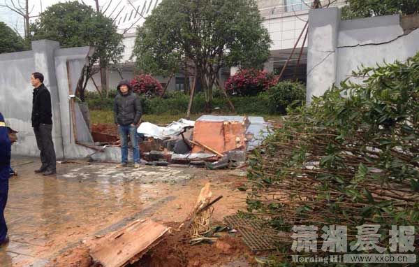 事故现场位于长沙市三馆一厅栖凤路西头,正好是长沙市博物馆东边的围墙。大约三米长围墙被冲垮,路边一棵碗口粗桂花树被拦腰撞断。